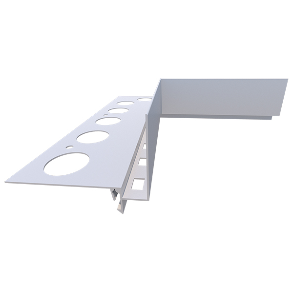 Kout se jednoduše nasadí do obou profilů a spoj se utěsní elastickým tmelem, čímž vznikne stabilní, vodotěsné a estetické napojení bez mezer.