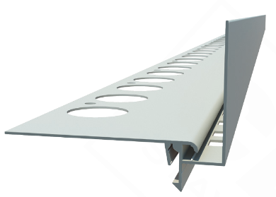 Terasový profil NT60 je robustní hliníkový ukončovací profil s drenážními otvory, který slouží k efektivnímu odtoku vody z balkonů a teras. Je určen pro velkoformátové dlažby o tloušťce 20 mm, dřevěné podlahy (decking) či terasové desky WPC, volně kladené na pevné nebo nastavitelné rektifikační terče, případně do kamenné drti.